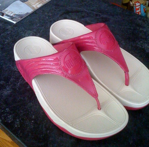 These are my new Fitflops. Aren't they gaw-jus???!!! (OK-maybe a bit gaudy)A couple of knitters had talked about them: how comfortable they are; how they are good for your feet; how they will make your legs and butt look really, really good. (I'm fifty-something, so that particular ship has sailed. Not gonna happen...)